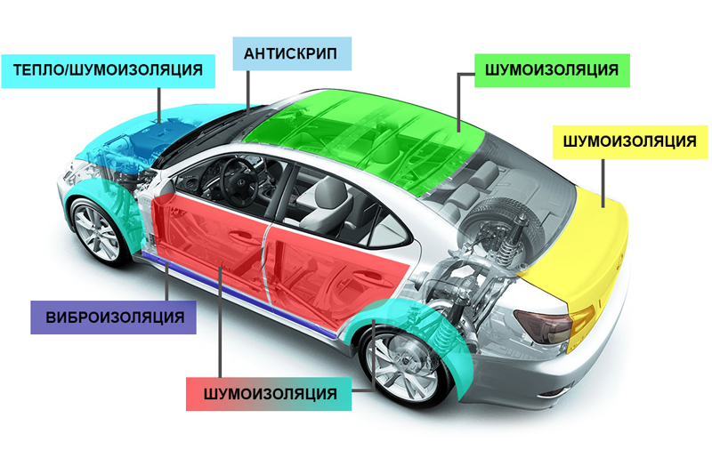 Зоны шумоизоляции автомобиля